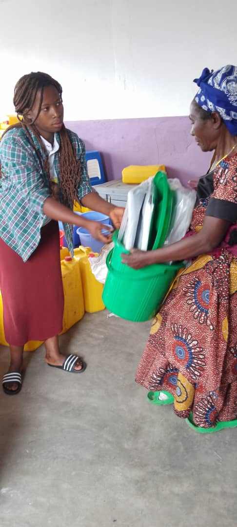 L' UFCVI, dans la mesure de ses moyens et pour parer à l'urgence vitale, distribue aux femmes les plus démunies, un kit composé d'un shitting plastique (Bash), un sceau de 20 litres, 2 gobelets, une couverture, un bidon de 20 litres et un petit pagne.
